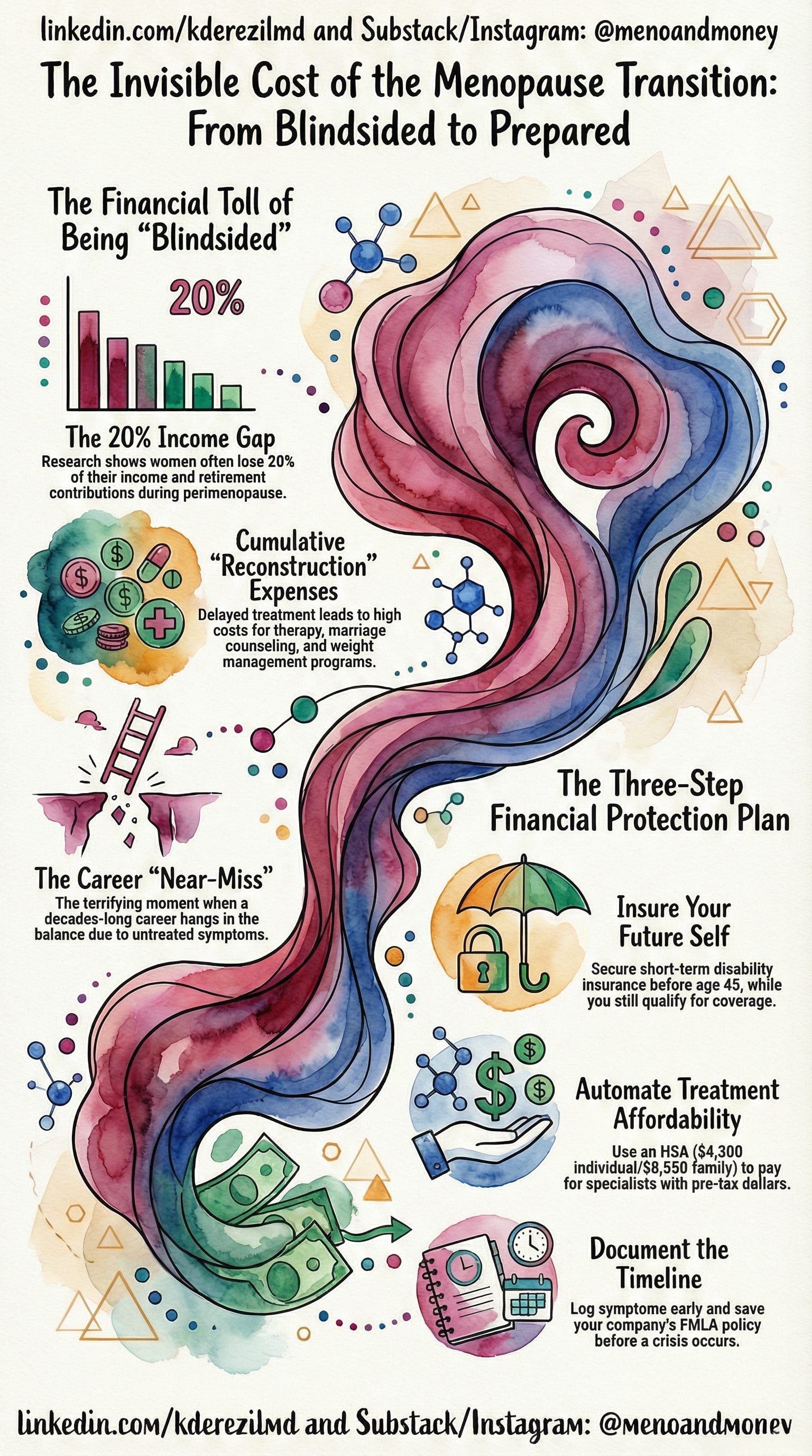 Retirement losses you can’t recover: Research shows women lose about 20% of their income during perimenopause—those aren’t just paychecks, they’re years of retirement contributions you’ll never get back